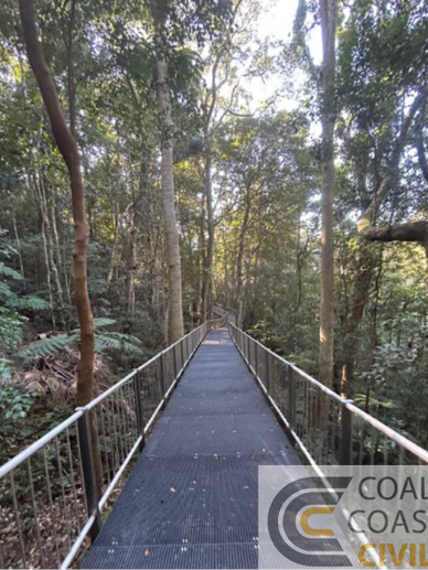 Coal Coast Civil, as the primary contractor, undertook excavation and installation works at the Minnamurra Back Track, in collaboration with NSW National Parks and Wildlife Service. The scope of works included foundation preparation for approximately 450m of new raised boardwalk, construction of pedestrian passing bays, new destination points and viewing platforms, as well as the demolition of an existing disability access ramp and installation of a compliant replacement ramp. These upgrades enhance accessibility and visitor experience while preserving the surrounding natural environment.